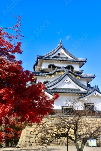 国宝・彦根城・紅葉(滋賀県・彦根市)