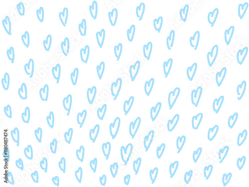 ラフに描いたたくさんのハートイラスト背景 水色・ホワイトデー