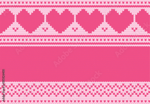 シームレスなハート柄の背景イラスト素材 ベクター パターン柄 バレンタインデー ニット風