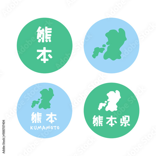 シンプルな日本の熊本地図 イラスト素材 セット