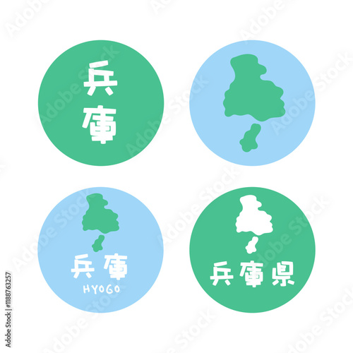 シンプルな日本の兵庫地図 イラスト素材 セット