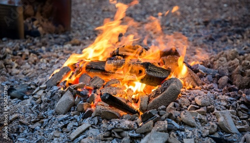 불로 인해 녹아내리는 금속과 타고 있는 나무 조각들