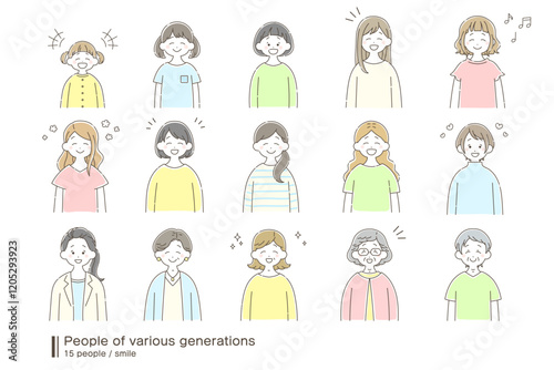 さまざまな世代の女性[笑顔]のゆるいイラスト(セット)