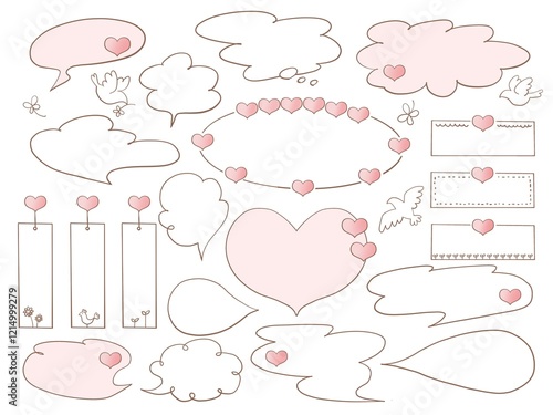 ハートのフレームと吹き出しのセット