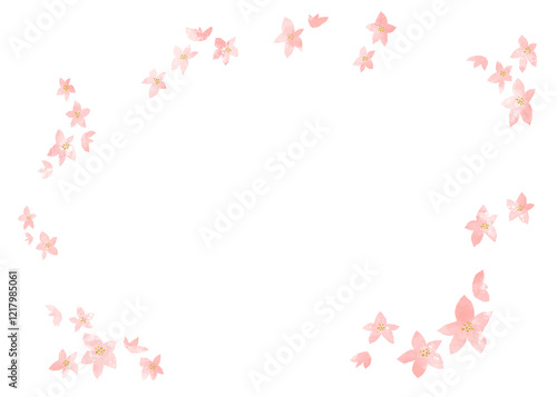 切り絵風のピンク色の花のかわいいフレーム素材 桜の花 桃の花