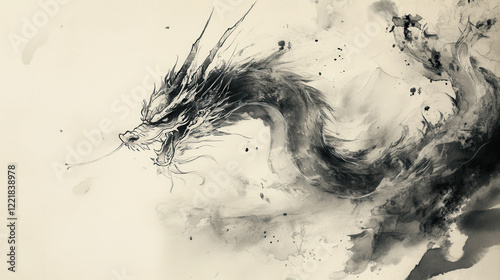墨絵、日本画、浮世絵/龍(ドラゴン)