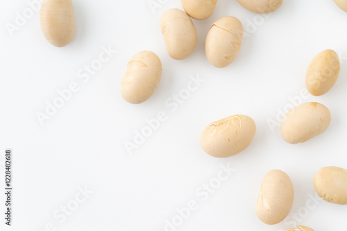 白背景に散らばる福豆(大豆)