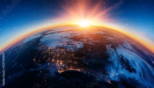壮大な日の出と地球の美しい風景 - 宇宙から見た地球の夜明け