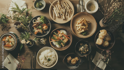 たけのこ料理が並ぶ春の食卓、旬の味覚を味わう和食膳