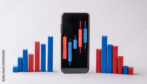 밝은 배경에 빨간색 상승봉과 파란색 하락봉을 간단하게 배열한 스마트폰 화면용 주식 봉차트