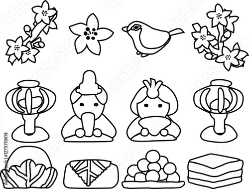 ひな祭りのセットアウトラインベクターイラスト