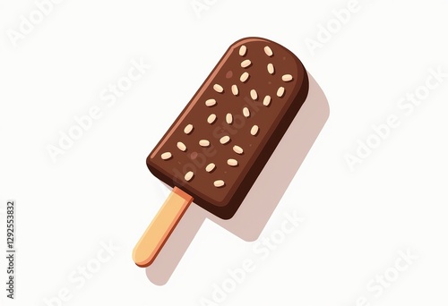チョコレートアイスキャンディーのフラットベクターアイコン:ナッツスプリンクルを使用したシンプルなデザイン、クリーンなライン、漫画風スタイル、白い背景に明るい色
