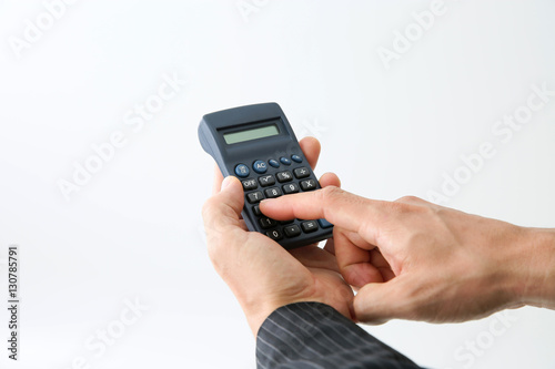 電卓を使うビジネスマン