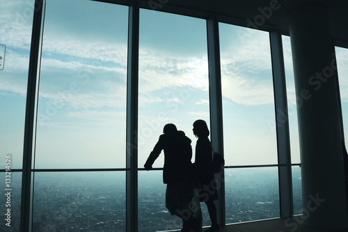高層階から景色を眺める恋人たち