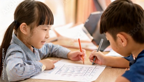 文字の勉強をする園児