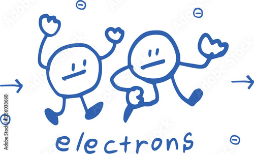 マイナスの電子の概念イラスト、科学の教育素材