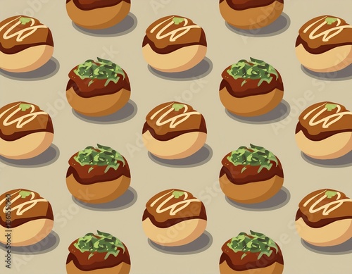タコ焼きがたくさん並んでいるイラスト