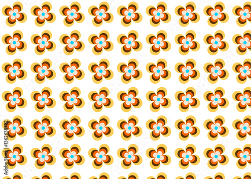 昭和レトロ 日本の花柄パターンのイラスト 背景壁紙素材 オレンジ 水色