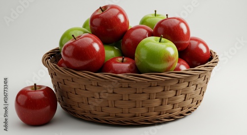 光輝く赤と緑のリンゴ、編まれたバスケットに満ち溢れる豊かさ
