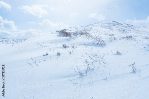 冬の鳥取砂丘の雪景色 鳥取県 鳥取砂丘