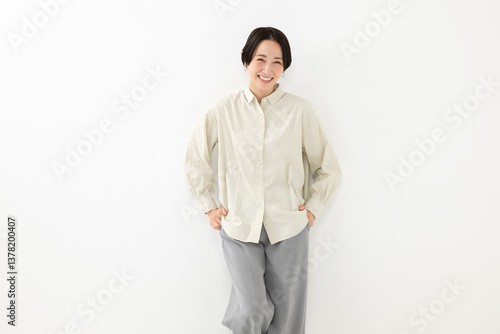 カメラ目線で立つミドル女性