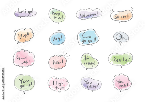 カラフルな英語フレーズふきだしセット