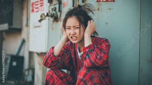 怒りと不満を全身で表現する若い女性のリアルなポートレート|叫ぶ・にらむ・感情爆発・怒鳴る・感情的・日常・リアル人物素材