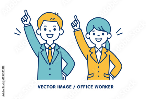 トップを目指す、若い男女の会社員のベクターイラスト素材_線の編集可能