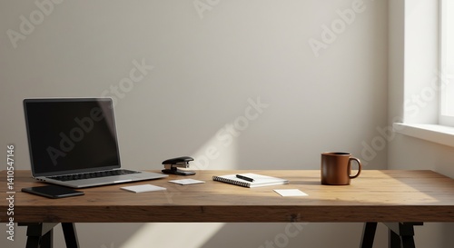 穏やかな光差し込む、木の温もり感じるシンプルワークデスク
