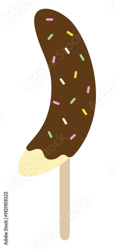 かわいいチョコバナナのベクターイラスト。素材、夏祭り、屋台、果物