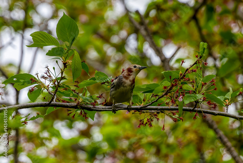 サクラの木にとまるコムクドリ