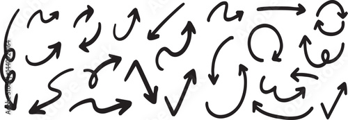 ベクターのペンの手書きの矢印セット 黒 矢印ハート装飾要素線画手描きスケッチ