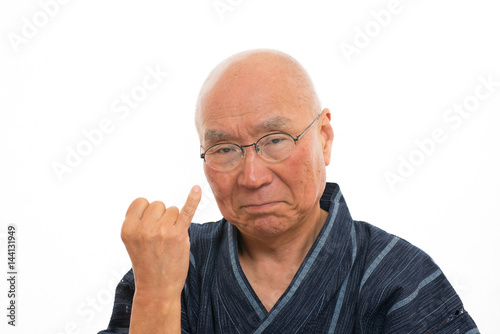 小指を立てるシニア