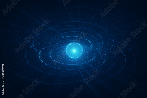 中心の光球から広がる螺旋状のデータネットワーク構図