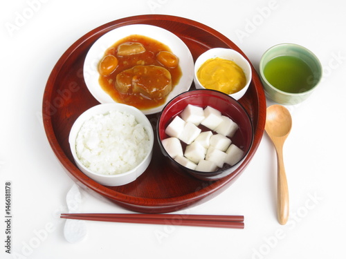 くるっと回して食べやすいように丸いお盆にのせたムース食
