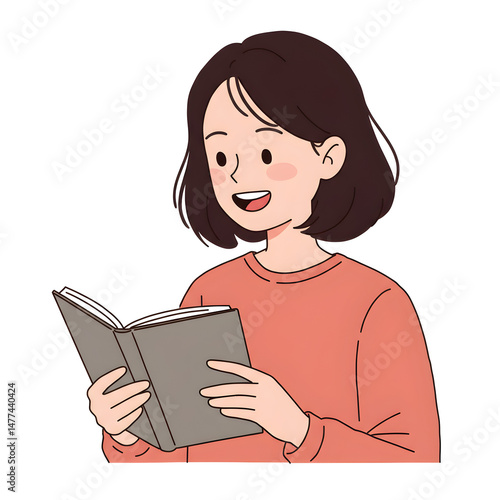穏やかな光に包まれた、読書を楽しむ女性 優しいイラスト