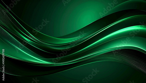 ダークグリーンの光沢ウェーブ背景