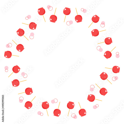 りんご飴 イラスト 円フレーム 夏祭り 食べ物