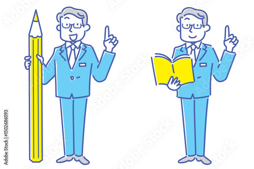 指差しをしている学校の先生のイラストセット