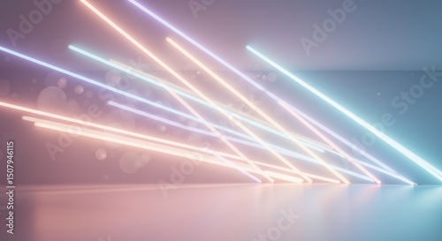 床に反射するパステルカラーの輝くネオンライトの抽象的な背景