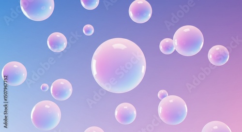ピンクと紫のグラデーション背景に浮かぶシャボン玉の抽象的な背景イラスト