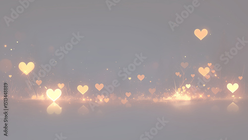愛を灯す金色のハート - ロマンチックな光のバレンタイン背景