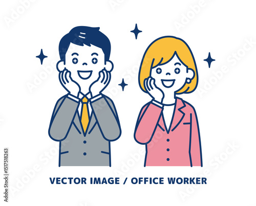 目を潤ませて感激する、ビジネスマンのシンプルなベクターイラスト素材_男女セット