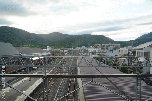 京都嵯峨嵐山駅の駅舎から見た線路の風景