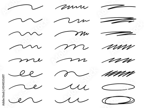 手書き風の線のベクターイラストセット。手描き、飾り、落書き、線画