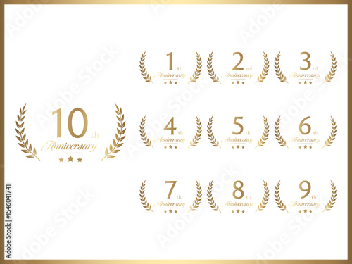 周年数字と記念日お祝い用の月桂冠デザインのゴールドバナーセット