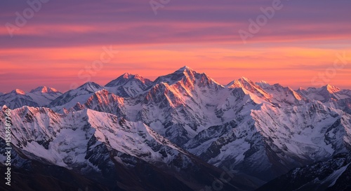 夕焼け染まる雪山 雄大な山脈 壮麗な風景
