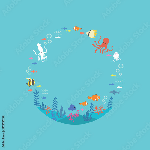 カラフルな海の中のイラストのフレーム