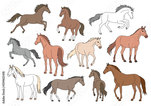 馬のイラストセットカラー