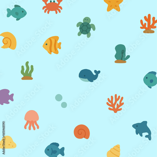 해양 동물 패턴 일러스트, 바다 생물 테마의 여름 배경 디자인